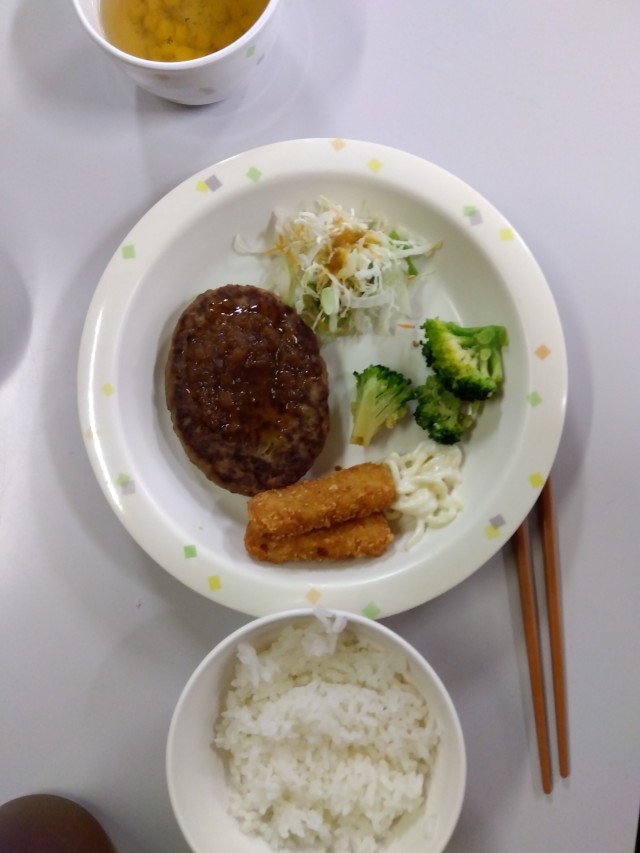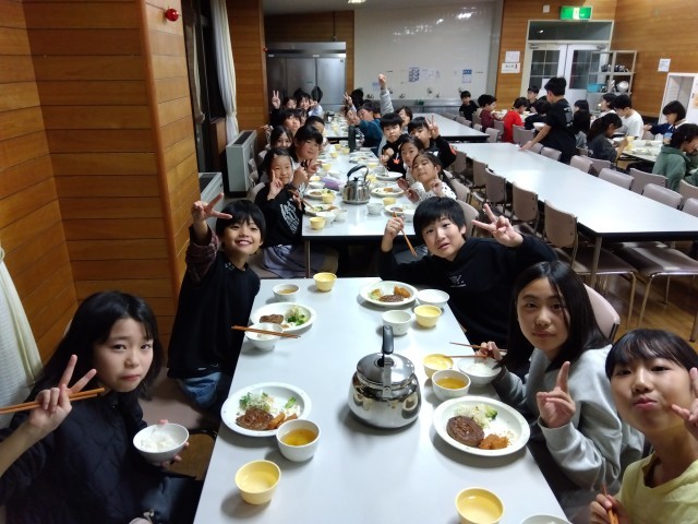 待ちに待った夜ご飯です!ご飯とスープ、たくさんおかわりしてお腹いっぱいです!