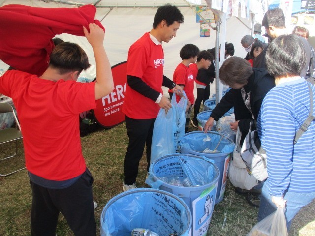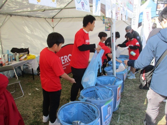 「ごみの分別お願いします!」「ペットボトルは、キャップとラベルをはがしてプラごみにお願いします!」子どもたちが言うと、みんなしっかり分別してくれます。
