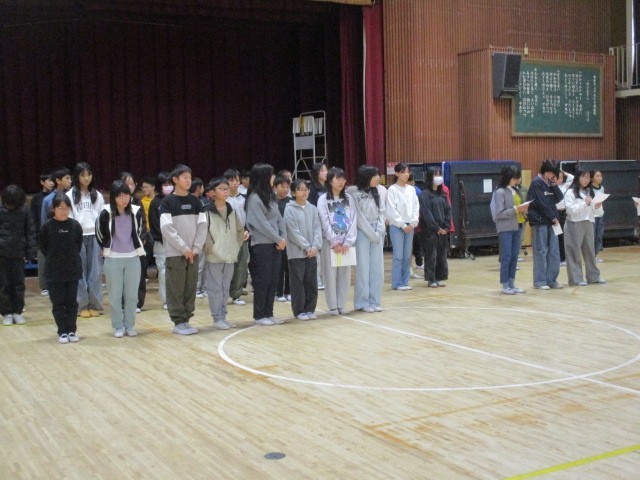 明日の児童朝会で、6年生が修学旅行報告会を行います。それに向けた最後の練習です。