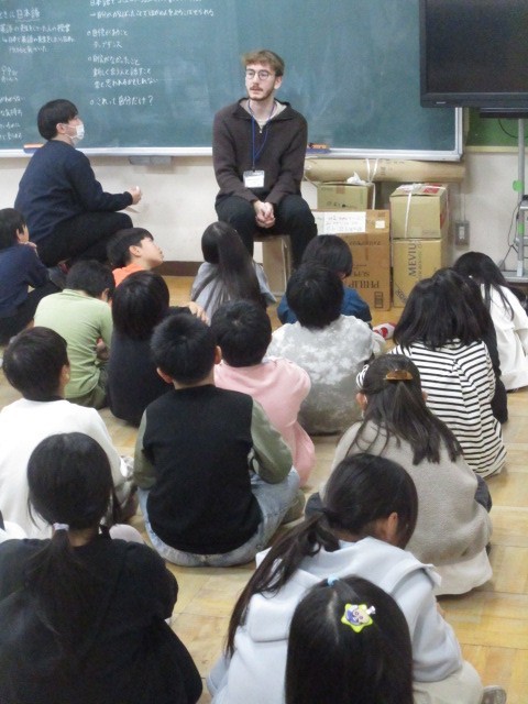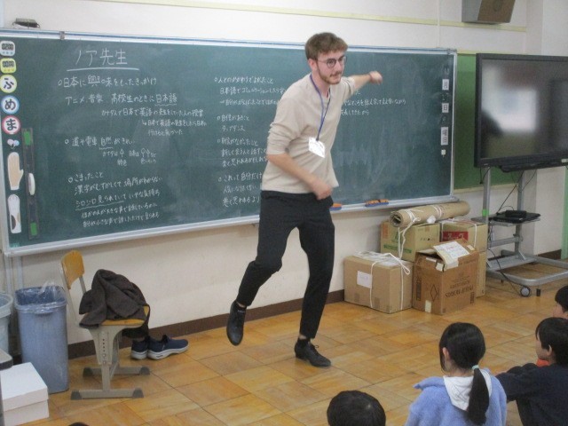 4年生は、ノア先生の英語です。先日、4年生は、ノア先生の聞き取りをして、ノア先生が人と付き合うのが苦手だったことを聞きました。でも、タップダンスに打ち込んだ時期があって、その日もタップダンスを披露してくれました。