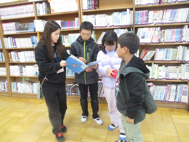 「読書タイムで、手洗いの大切さを絵本の読み聞かせで訴えます。保健部の人たちです。