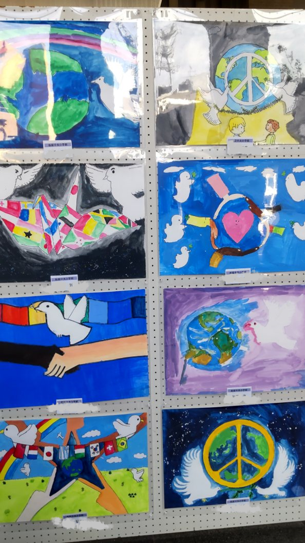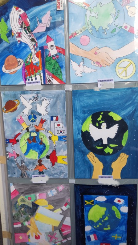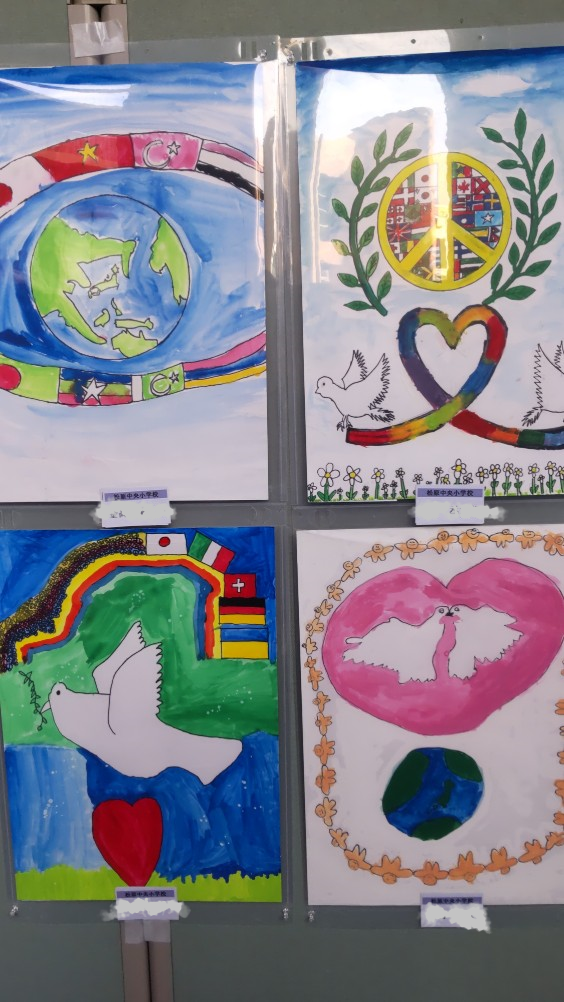 市役所ロビーで6年生の「国際平和ポスター展」が開催されていました。なかなかカラフルで平和を訴える絵が並んでいました。