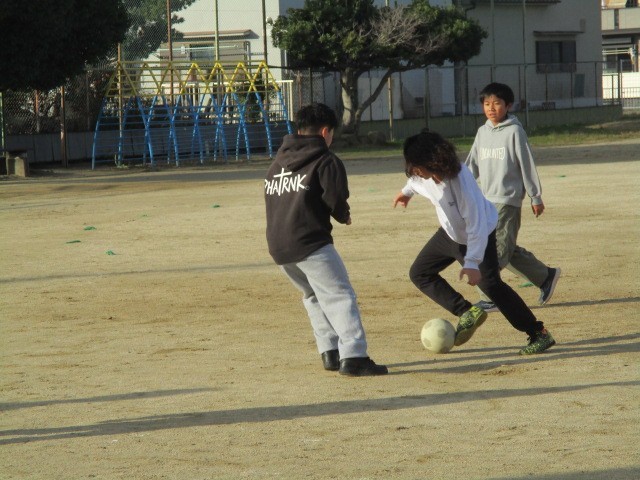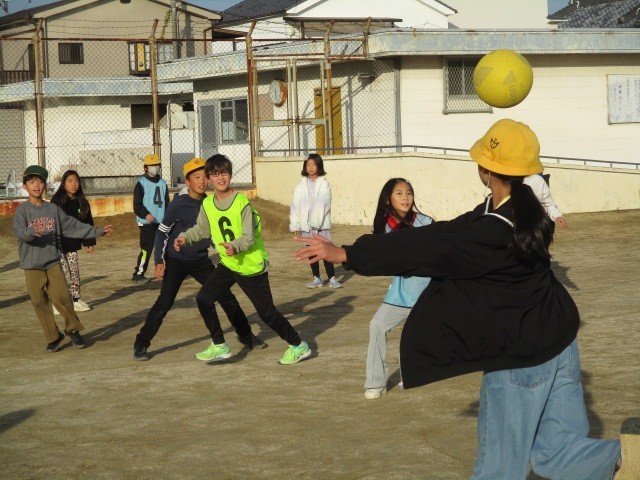 4年生は「ブルドック」、5年生は「復活ドッジ」6年生は「サッカー」をしながら、朝を過ごしています。