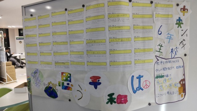 6年生がまつばらテラスで「私が思う平和は」展を行っています。