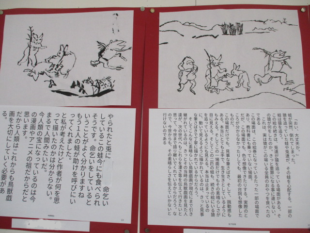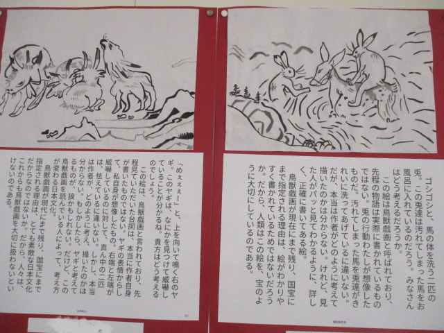 6年生は、国語で学習した鳥獣戯画を絵と文で仕上げました。なかなか趣のある絵が仕上がりました