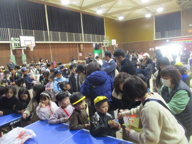 さあ!大抽選会です!ゴールドの景品をGetするためにみんな祈ります。番号を引くのは教頭先生。60人くらいの人がゴールドの景品をGetして帰りました。残念ながらGetできなかった人は、飴玉をもらって帰りました。