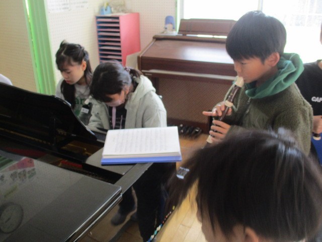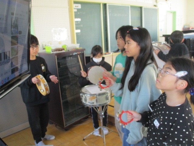 4年生では、音楽の時間に「勇気100%」の合奏の練習をしています。今は、パートに分かれて練習していますが、全員の合奏が楽しみです。