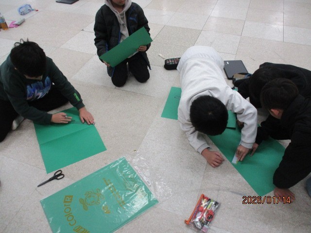 掲示部では、今年の「あいさツリー」を製作しています。