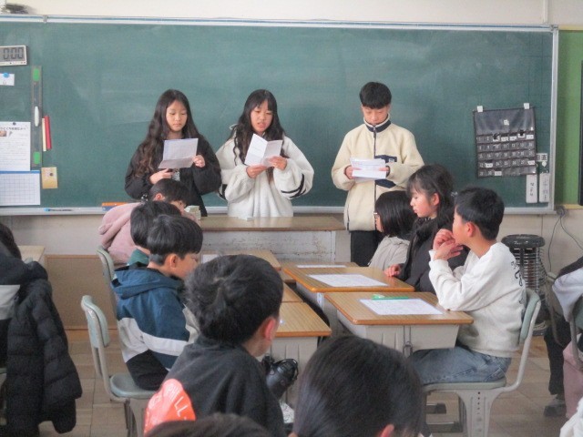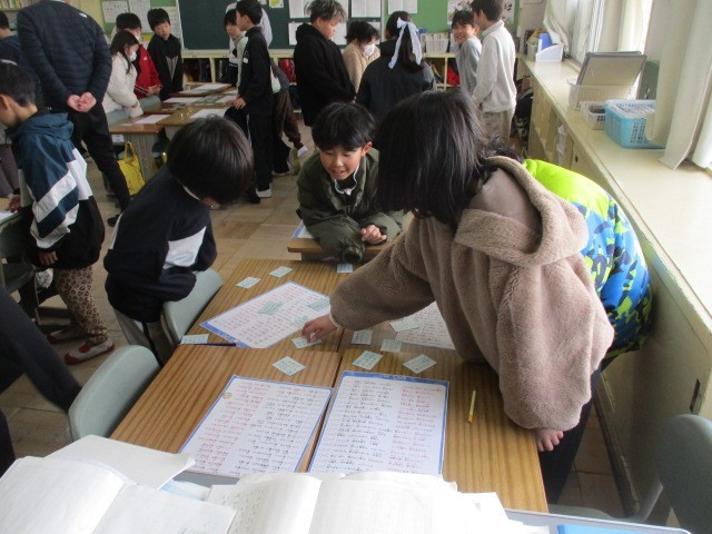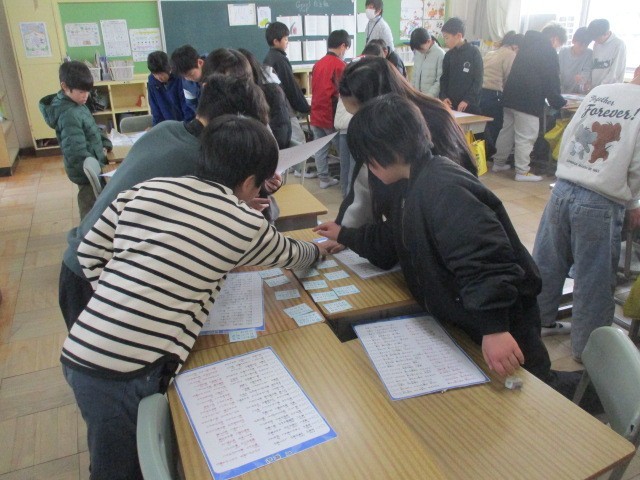 朝読書の時間等を使って、図書部の人が各クラスに入り込み、百人一首を教えます。今日は4年1組でした。皆さん、楽しみにしていてください。