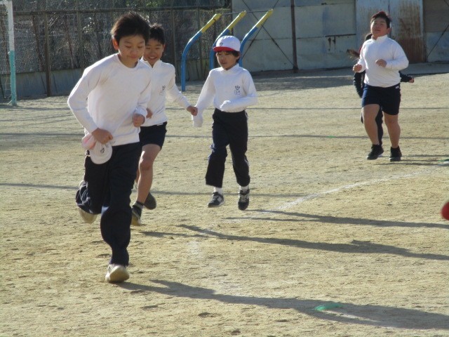 4年生は、6分間でどれだけ走れるかという6分間走をしました。速い子で10周走った子もいました。