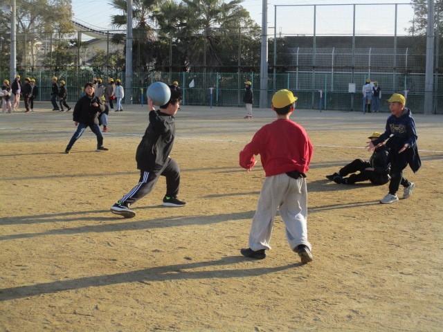 今日は、3年生「王様ドッジ」4年生「ポートボール」5年生「復活ドッジ」と3学年が朝遊びをしていました。朝遊びの時は、みんな本当に走って運動場に出るんですよ。