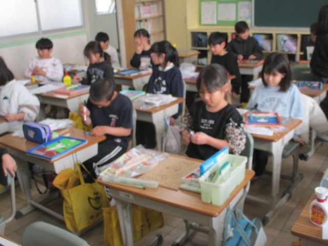 トントンコロコロゲームは玉転がしゲームを作れる工作キットです。絵は描けていたので、周りの枠を木工用ボンドでつけていました。