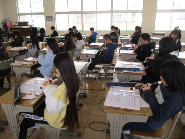 リコーダーの練習をしています。曲名は、「威風堂々」です。初めて合わせた割には、すごく上手でしたよ!