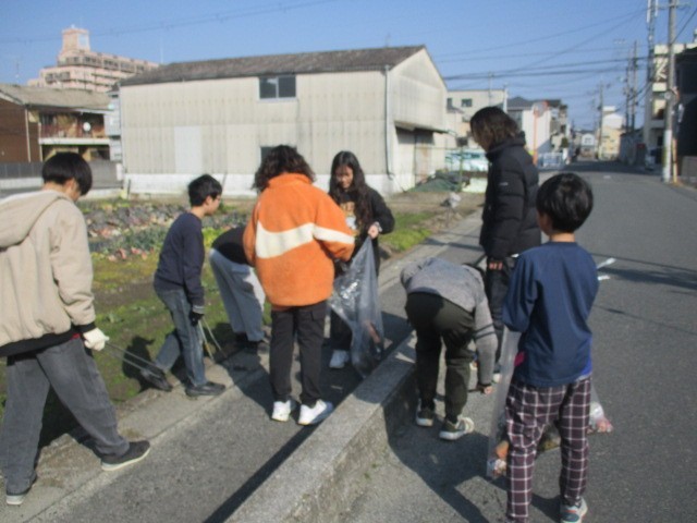 6年生は、家庭科の「共に生きる地域での生活」の中で、地域の人のためにできることを考えてみんなで地域の清掃活動をすることになりました。今日は、赤コースと三中付近、東新町三丁目付近、緑コース、青コース、東新町第二公園付近に分かれて、その道中の清掃活動を行いました。子どもたちは、空き缶や空き瓶が捨てられていることとたばこの吸い殻が本当に多いことに気づきました。みなさん、公共のマナーを守りましょうね。