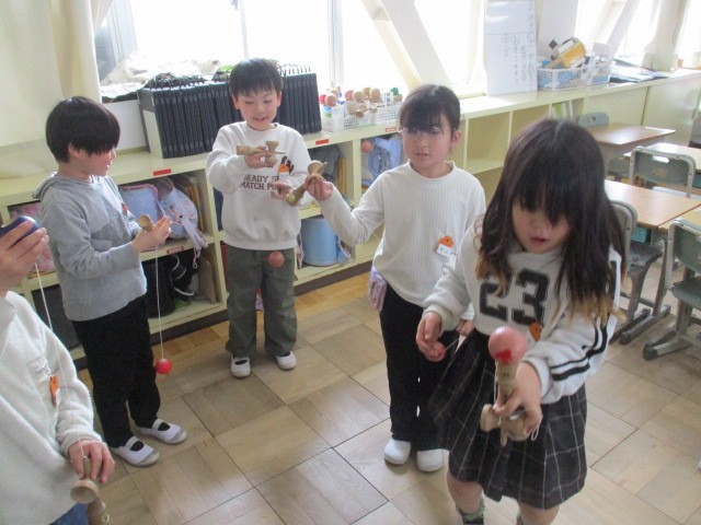 計算カード、こま、けん玉、木琴など参観でこの1年でできるようになったことを発表します。みんな頑張って練習しているので楽しみにしていてください。