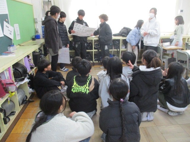 今日はSDGsフェスのプレで、5.6年生でやってみました。給食部は、食べ物についた菌を釣り上げて取り除くゲーム、図書部はSDGsクイズ、体育部は輪投げで入ったところに書いてある指示で運動をしてもらっています。
