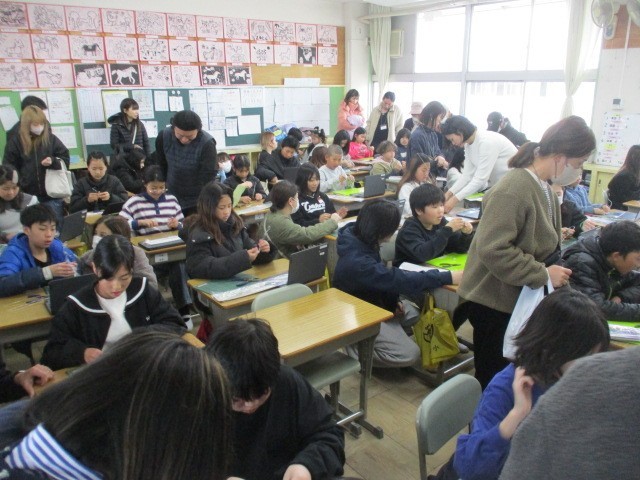 5年生の参観は針金工作です。お家の人に手伝ってもらいながら、楽しいひと時を過ごすことができました。