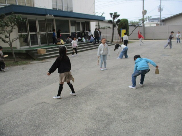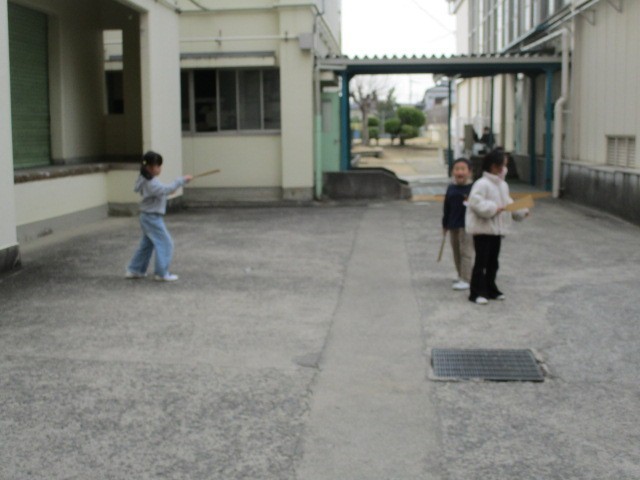 1年生が羽子板をしていました。続けて打ち合うのがなかなか難しいです。