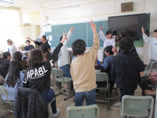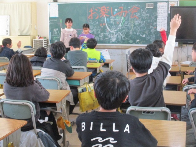 4年生は、各クラスでお楽しみ会をしていました。自分たちでチームを作り、出し物を考えて、お楽しみ会をしています。終わったらどうだったかをみんなに聞いて、よりいいものをめざします。