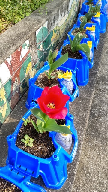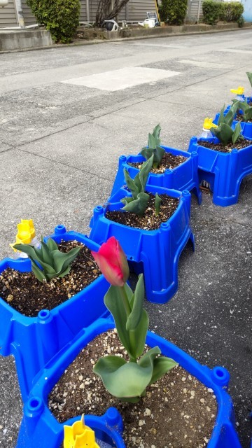 一年生が植えたチューリップの花が咲き始めました❗️