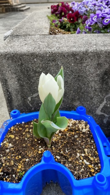 この間だいぶ暖かくなってきたので、チューリップの花が咲き始めました。早く咲き始めると嬉しいんだけど、入学式までもつかなあ?
