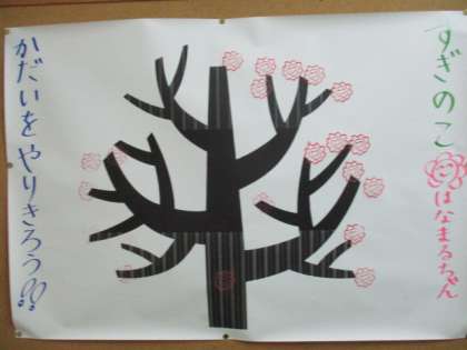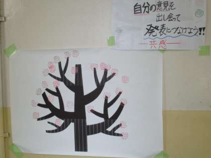 10月6日から13日までISS三中校区で「はなまるちゃんWeek」に取り組んでいます。「はなまるちゃんWeek」とは、この期間、学年で決めた学習目標をしっかりやって、達成したらはなまるちゃんをもらえるので、学年の所に張った木をはなまるちゃんで満開にしようという取り組みです。週の半分が過ぎましたので、たくさん花が咲いていた2学年を紹介します。6年生と杉の子です。頑張りました!拍手!パチパチパチ