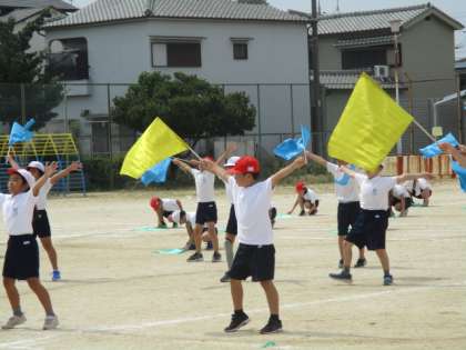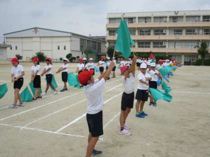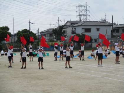 昨日は,4年生の練習時間がなかったので、今日は4年生の特集です。旗体操も随分見栄えのするものになってきました。「バサッ、バサッ!」という旗の音。堂々と胸を張った態度。なかなかいい感じです!