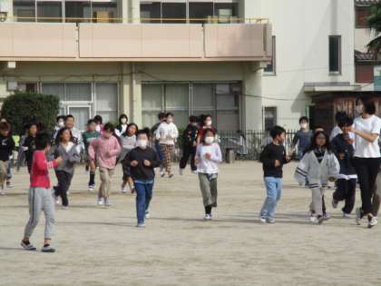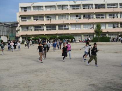理科室から出火したという想定で訓練をしました。早いクラスは避難開始から1分45秒で校庭に集合することができました。今回は、子どもたちにも先生方にもいつ訓練をするかを伝えずに訓練をしました。