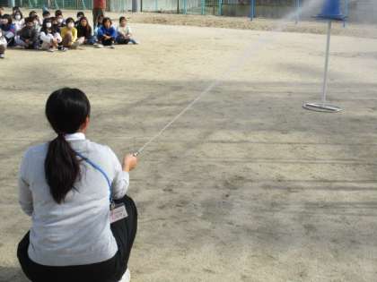 子どもたちには、災害はいつ起こるかわからないから、日頃から避難経路を確認しておかなければならないこと、火災の場合は、有毒ガスや煙を吸って意識を失う場合が多いので、ハンカチで口鼻を押させて姿勢を低くして避難するよう伝えました。