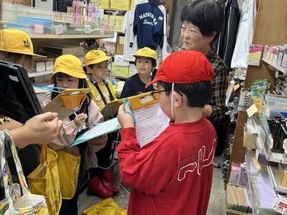 「尚美堂」では、いつも使っている制帽や赤白帽、体操服にたくさんの文房具がありました。