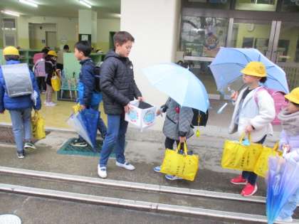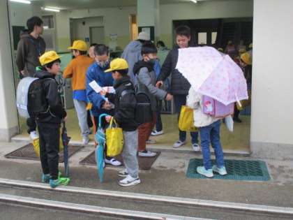 先週はPTAがあいさつ運動をしてくれました。今週は、運営部の子どもたちが「あいさつ おみくじ」であいさつ運動をします。「あいさつ おみくじ」とは、運営部で考えたあいさつ運動で、「おはようございます!」と言って、「くじをどうぞ」と引いてもらいます。おみくじには、ラッキーアクションが載っていて、「友だち10人にあいさつしよう」「校長先生とハイタッチしよう」とか、ラッキーになるアクションが書かれています。