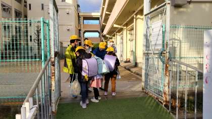 「おはようございます!」「おみくじ引いてください!」と声が聞こえます。昨日は雨で靴箱だったけれど、今日は門で運営部の「あいさつ おみくじ」やってます!
