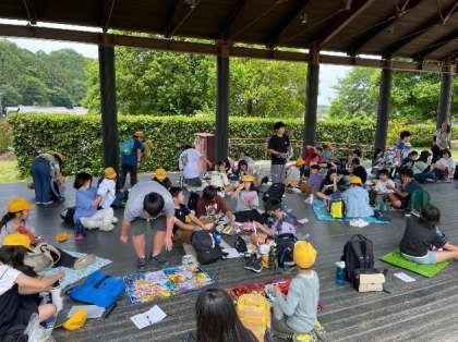 たくさんの歴史的建造物を見たり、指令を解きながらゴールの石舞台古墳へ辿り着きました。お弁当を食べた後は、広場でたくさん遊びました。石舞台古墳の見学をして、ながい道のりを歩いて帰ってきました。天気も良くて暑い中、みんな頑張ってたくさん歩きました。