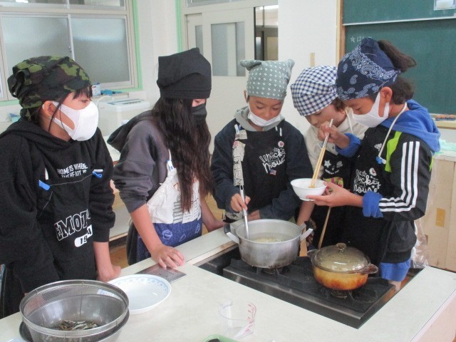お鍋でご飯を炊いて、味噌汁を作りました。炊飯器ではなく、鍋でご飯を炊くので、どこから強火でどこから弱火なのだろうと時間を計りながら作りました。味噌汁は、煮干しからだしをとったのでとってもおいしかったですよ。毎回、サポーターの方が来てくれるのでとっても嬉しいです。
