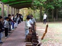 アクティビティが始まりました。こちらはアーチェリーです。的まで届かない人も多くい...