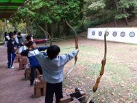 アーチェリーのグループはアッという間に上達し、的の真ん中に当てることができる人も...