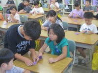 6年生が各クラスに行って折り鶴の折り方を教えてくれました!