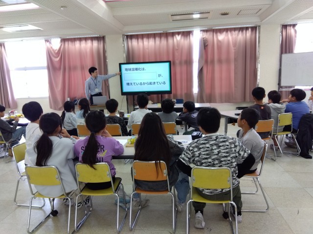 児童朝会(修学旅行出発式) 5年生環境学習聞きとり
