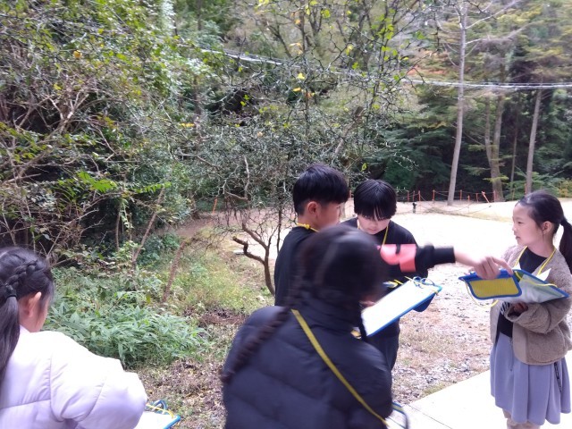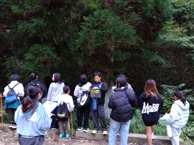 ネイチャービンゴの答え合わせをしています。動物や植物を身近に感じて、とても楽しい...