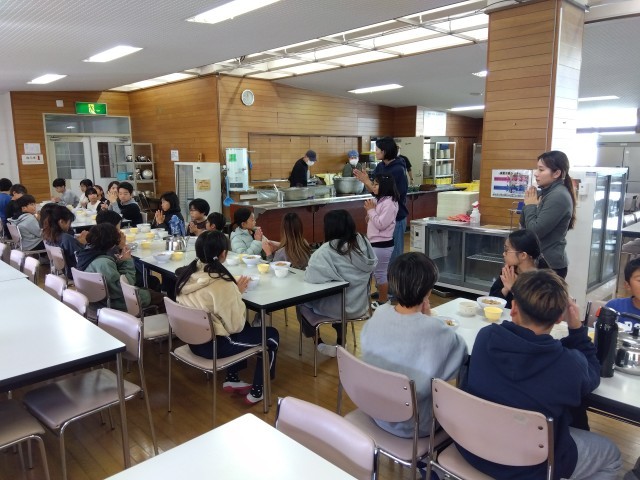 最後のお昼ごはんです。みんなでおいしく牛丼をいただきました。