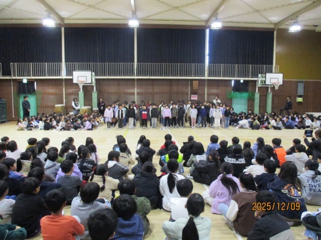 児童朝会 放課後学習 松原高校生とすぎのことの交流