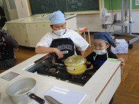 5年生は、調理実習でご飯とみそ汁を作りました。