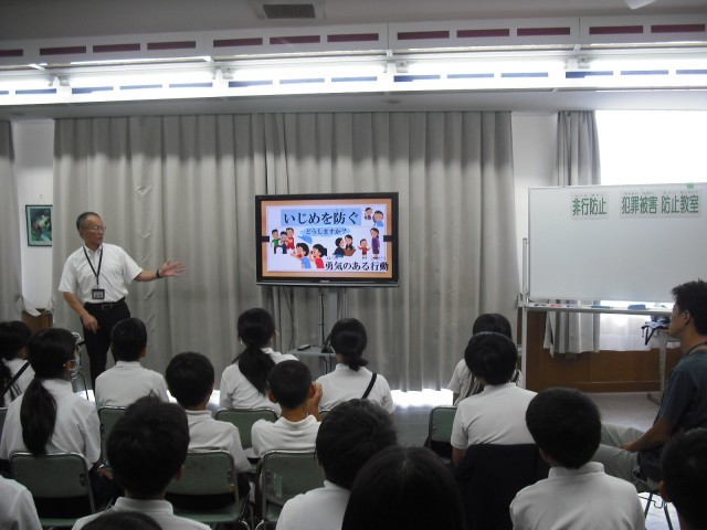 5年生では大阪府富田林少年サポートセンターと大阪府警察本部から講師を迎え、非行防止教室を行いました。犯罪被害防止や、犯罪を犯すとどうなるかということを、教えていただきました。