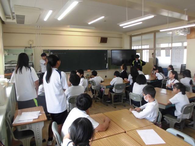 松原第二中学校の生徒たちが、各学年にボランティアとして先生のお手伝いをしに来てくれました。