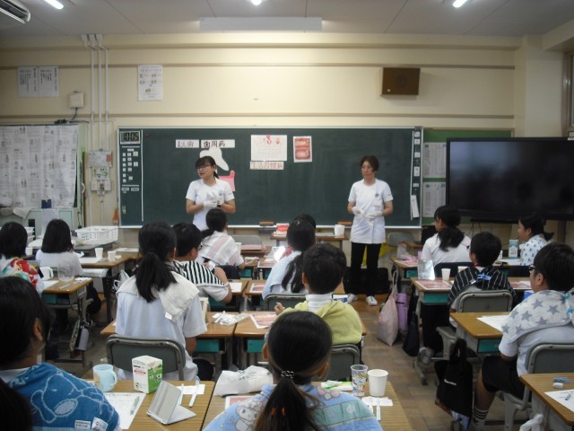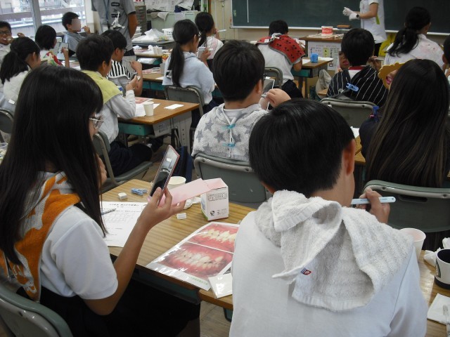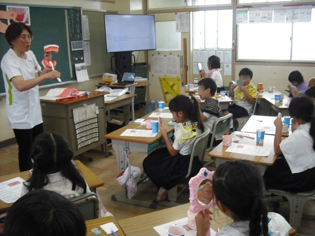 2年生と5年生に歯科衛生士さんが指導してくれました。