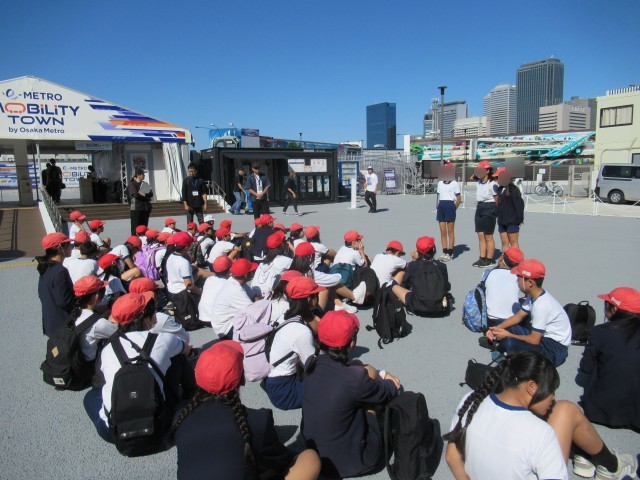 モビリティタウンでは、過去から未来の大阪の乗り物を学びながら、レースやアバター体験をしながら楽しく遊んでいました。