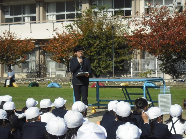 閉会式では、中川教頭先生より、本日の訓練に際し、澤井松原市長、地域防災ネットワークの石崎会長、地域の皆様、松原市消防本部、松原市、松原市教育委員会の皆様の協力に対してお礼の言葉がありました。児童も真剣に訓練に参加し、保護者の皆様の協力もあって貴重な訓練が実施できたこと、ありがとうございました。