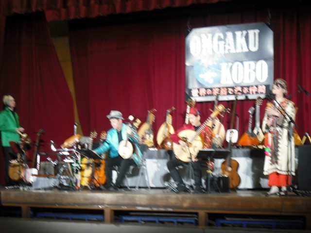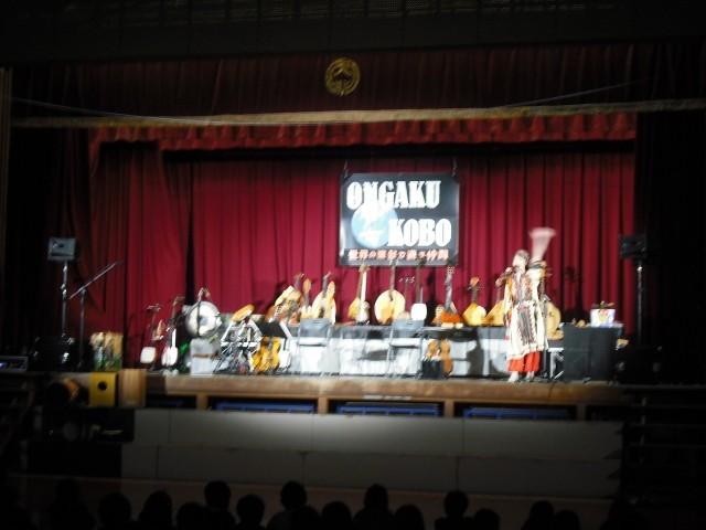 ❝世界の楽器で遊ぶ❞ONGAKU KOBOさんの日本の三味線と笛で、楽しい祭りの曲から始まりました。児童も手拍子で盛り上がりました。三味線は、演奏の後三つに分けてたたんで、箱の中に納まりました。日本の琵琶と世界の琵琶の演奏は、🎵「幸せなら手をたたこう」丸い楽器では🎵「アンパンマンのテーマ」、三角と四角の楽器では🎵「ピタゴラスイッチ」。軽快で楽しいメロディーに引き込まれました。