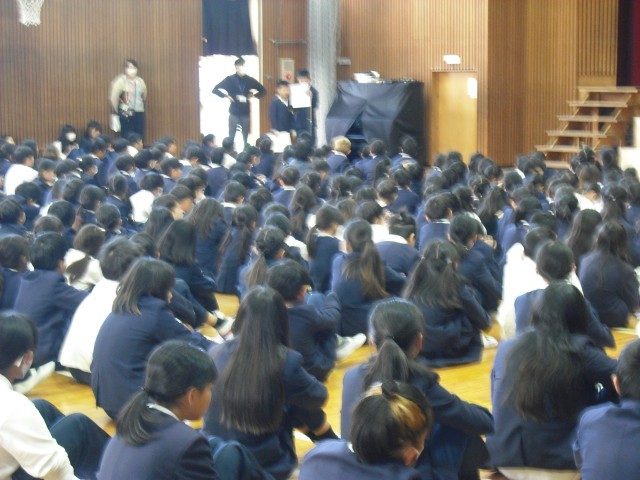 保健委員会からは、ハンカチ・ティッシュ・爪切りについての調査の報告がありました。健康・安全のために持ち物・爪切りなど、毎日の確認をしようと呼びかけがありました。代表委員会からは、人権週間で、各クラスで、どのように人権を大切にしてきたのか、交流の呼びかけがありました。「人の気持ちも考えて、自分の気持ちも言う」「相手の気持ちを考えて、行動した」「普段から周りを見て行動した」「終わりの会で、キラキラスターを言うのをがんばった」等など、たくさんの発表がありました。発表を踏まえて、12月・1月の目標として、①みんなで、声かけをして切りかえよう。②笑顔で終わって、笑顔で始めるために、自分と友だちのことを考えて行動しよう。の2つが提案されました。最後に、生活指導の先生から、子どもたちだけで校区外などに出かけてトラブルに巻き込まれないよう注意がありました。