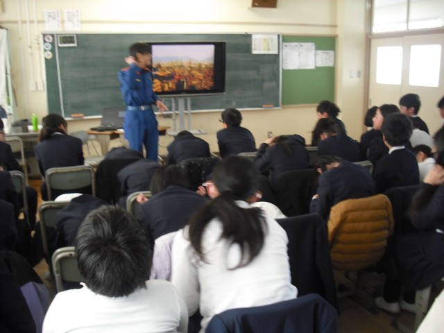 続いて、平成7年の阪神大震災について、お話していただきました。この時は、消防士として救援活動に入られたそうです。最初に救援に入った神戸市役所では、たくさんの方が避難されており、人であふれていたそうです。水道も止まり、糞尿の臭いが鼻をつく中、そこしか雨風をしのぐ場所がない避難した方々の大変さが、今も忘れられないそうです。その後、倒壊した家屋の下敷きになった方々の救助活動にあたったそうですが、ようやく人を引き出すことができた時には、すでに身体が固くなっており、悲しい悔しい思いをしたそうです。その無念さが「全員を助け出すことは難しいが、命の守り方は伝えることができる」という使命感にかられたそうです。